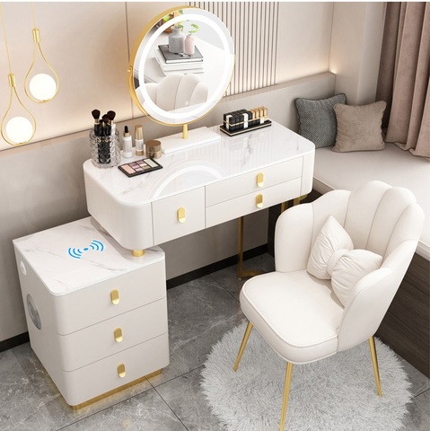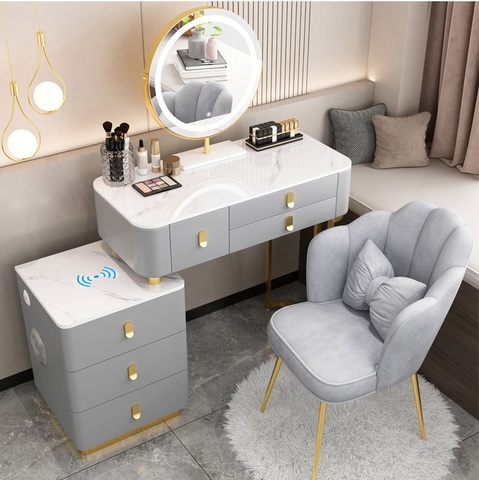 Tocador de alta clase con espejo grande, tocador de almacenamiento de dormitorio moderno, con cajón y espejo, mesita de noche inteligente