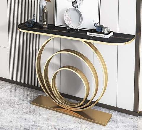 Mesa lateral de lujo para sala de estar, mueble dorado brillante con marco de Metal, consola